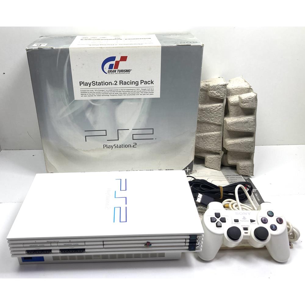 PlayStation 2, Branco Edição Gran Turismo, Na Caixa Seriado, 1 Controle, Modelo SCPH-55000 GT, PS2, (Usado)